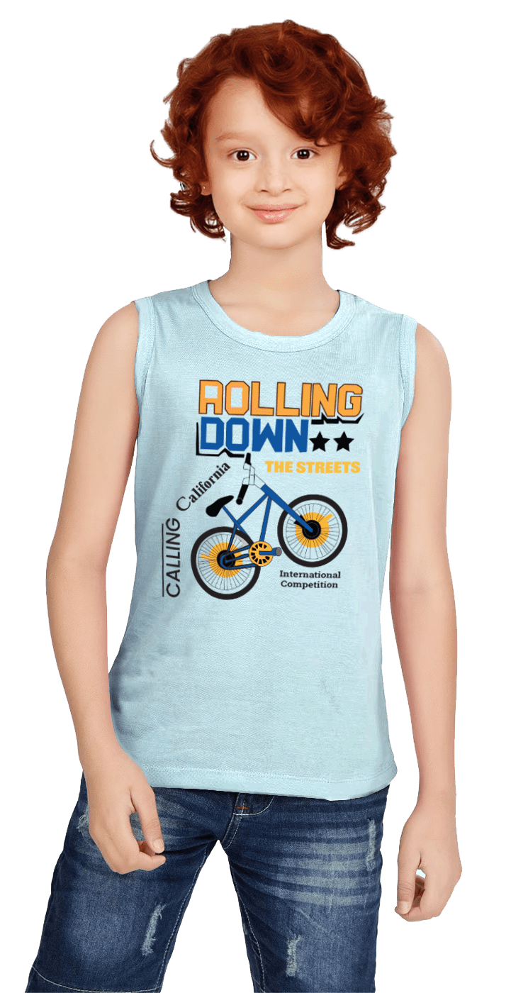BOYS SLEVELESS T-SHIRTS WITH CHEST PRINT R/N