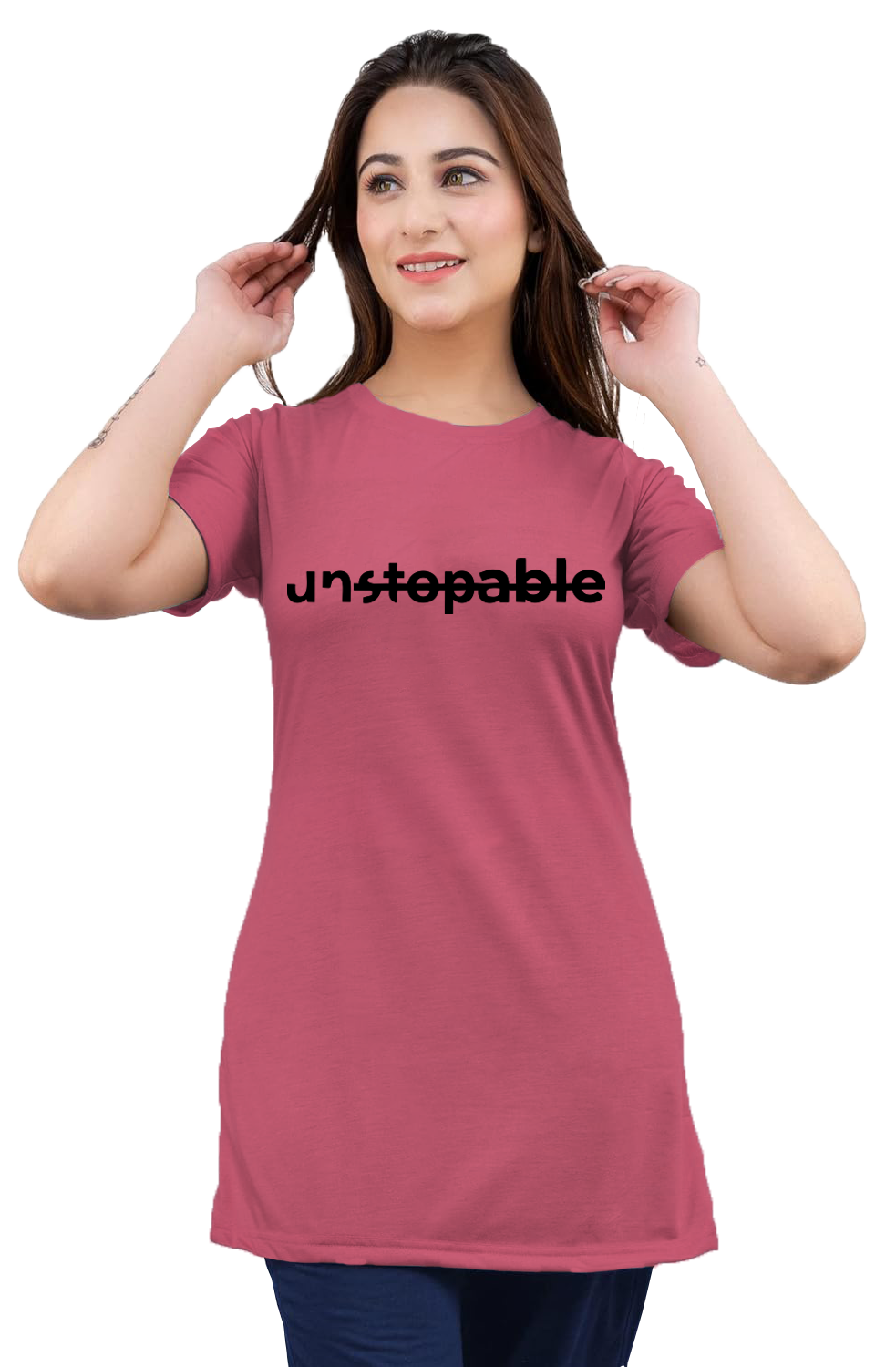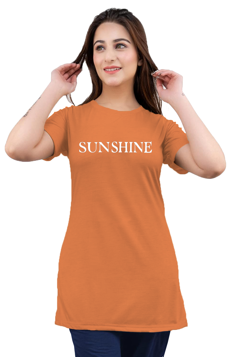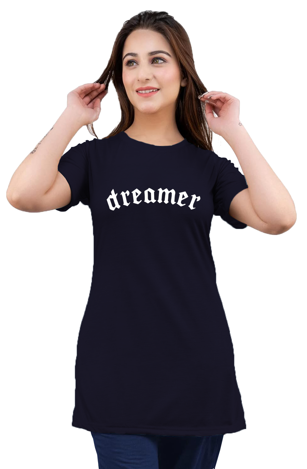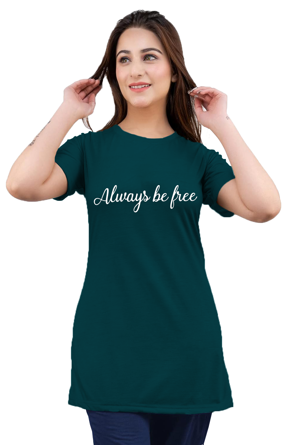 LADIES SLOGAN LONG T-SHIRTS (LPLAIN LONG T-122 )